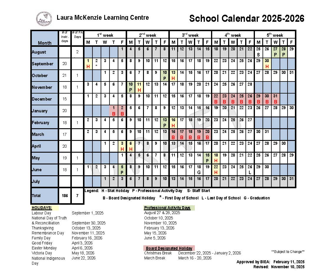School Calendar 2025-2026